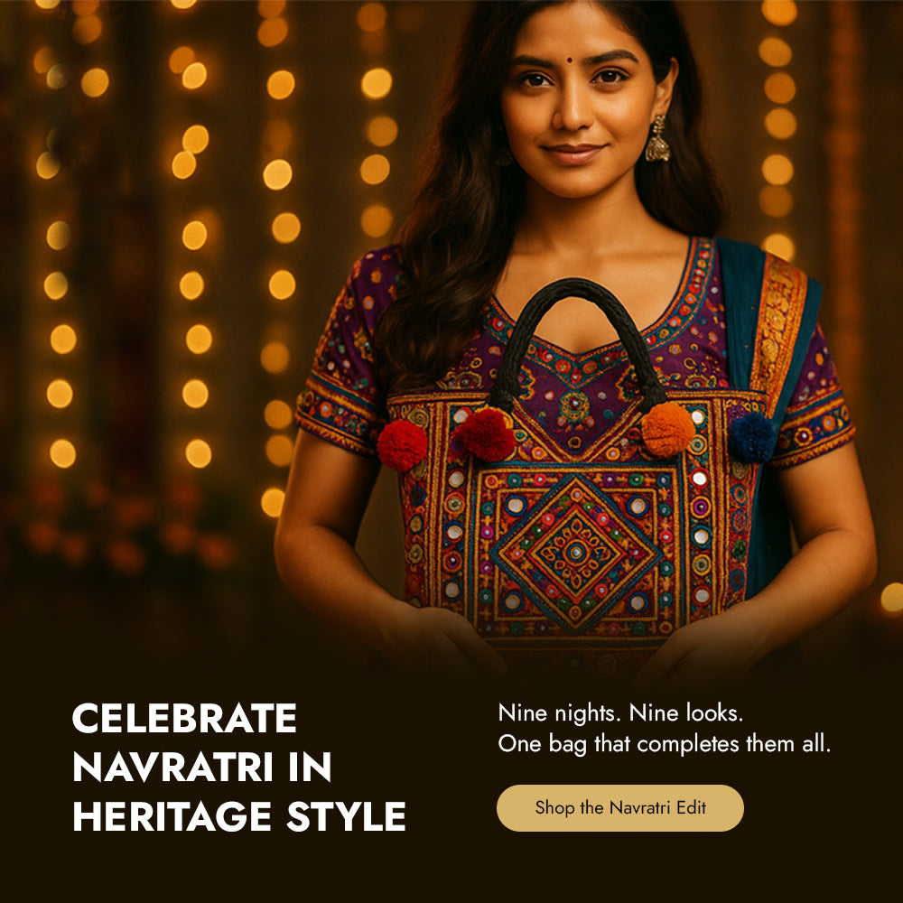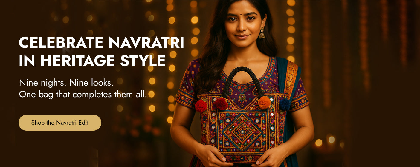End Navratri in style with handcrafted pink bags – the perfect festive statement.